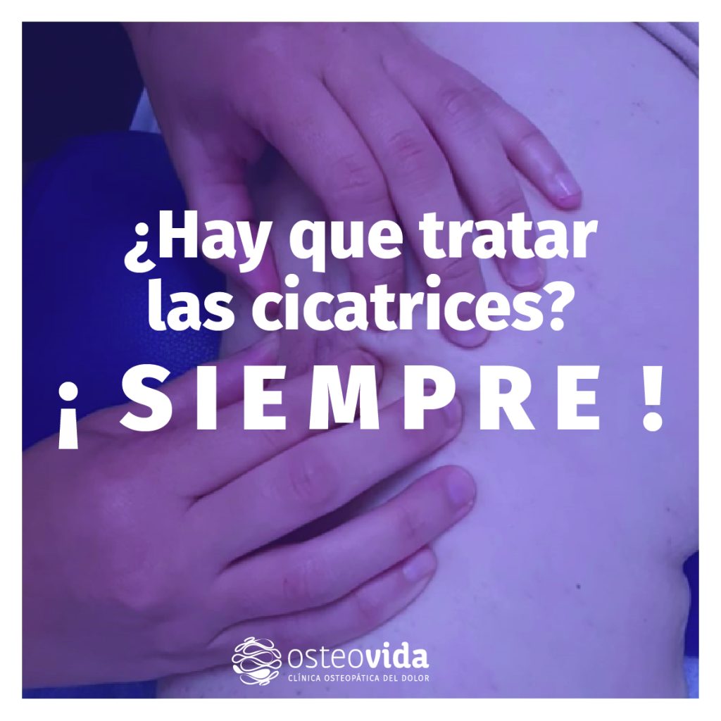 - Las cicatrices son cambio en nuestro tejido y al unirse de nuevo se pueden generar adherencias (uniones del tejido de manera inadecuada) en la zona localizada. Esto se traduce en dolores en la propia zona de la cicatriz o en otras zonas más alejadas.